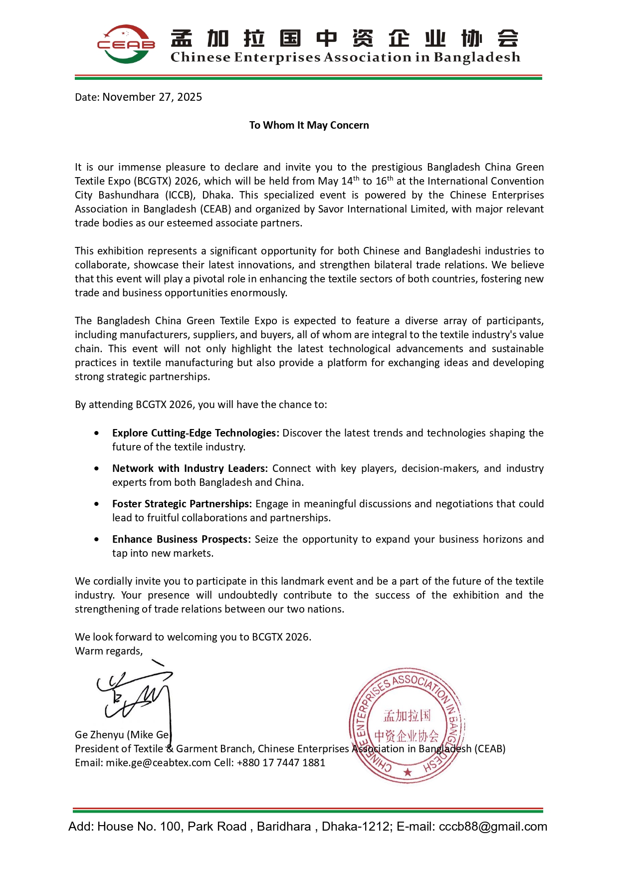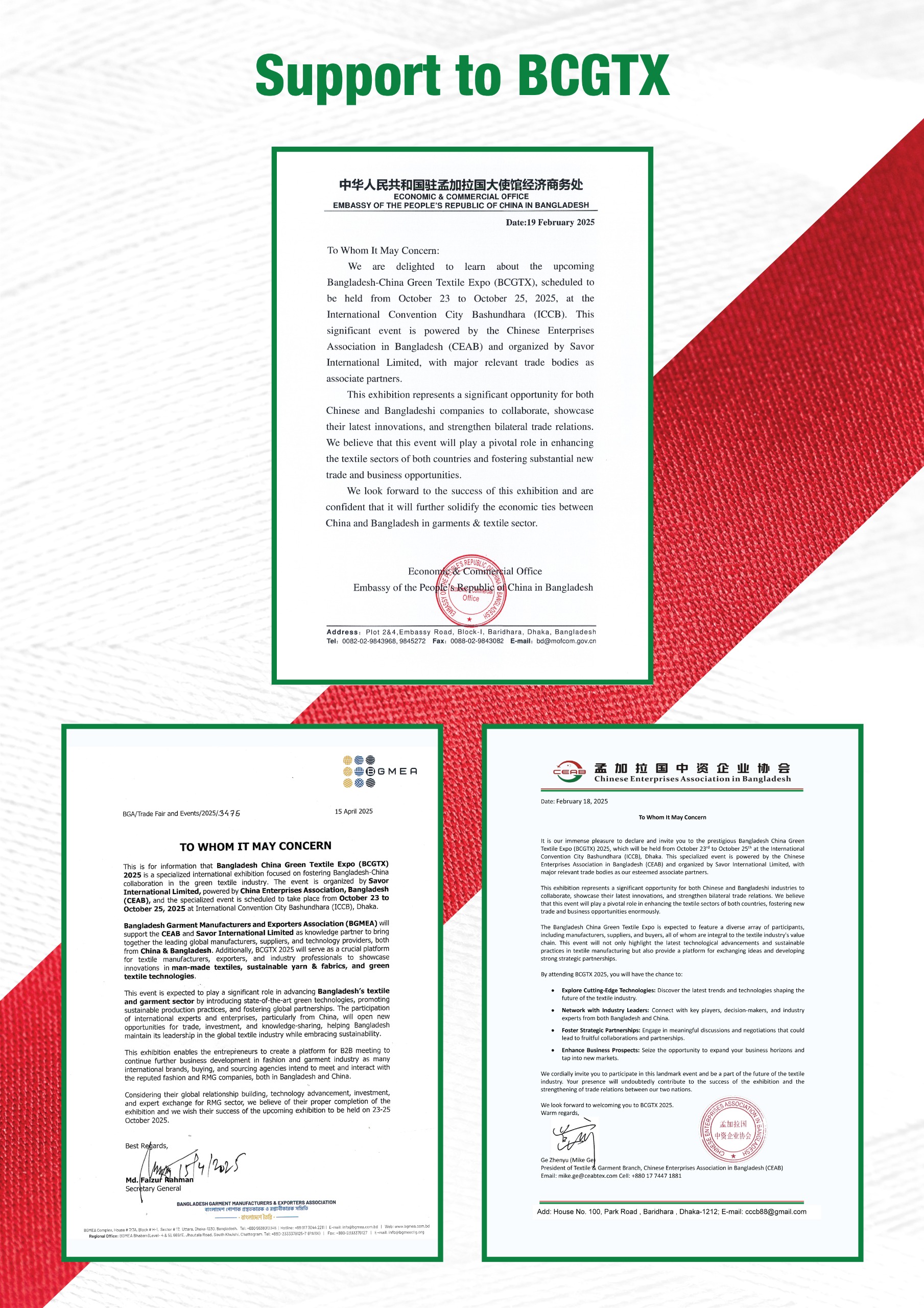 Welcome to the Bangladesh China Green Textile Expo (BCGTX) 2026. Join us at the premier event of the year, where the vibrant textile and garment industries of Bangladesh and China converge. The Bangladesh China Green Textile Expo 2026 is a unique platform that brings together key players from both nations to explore the latest innovations, technologies, and opportunities in the textile sector. This three-day event is packed with insightful exhibitions, networking opportunities, and cutting-edge showcases.